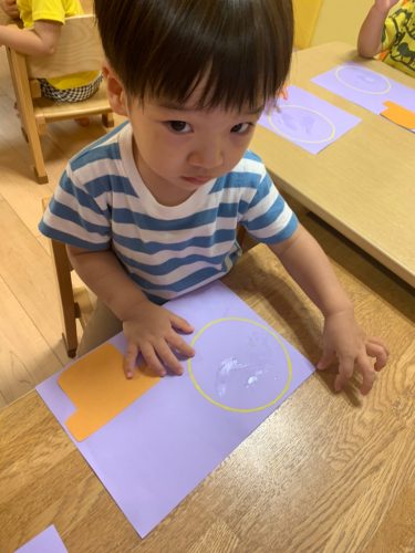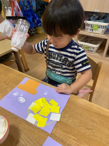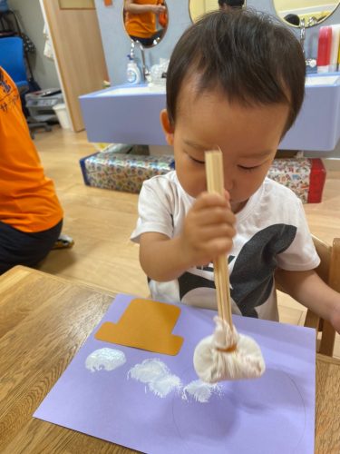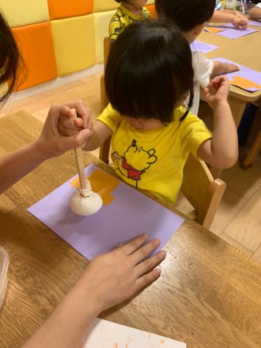 保育士と一緒に染め紙をしました✨