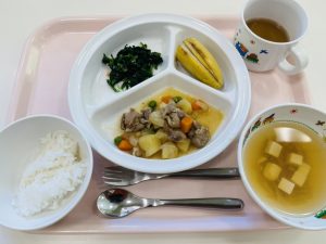 ※ほうれん草だけの和え物は、残食が多くなってしまいますが、「ほうれんそう食べれたよ~」と言う声も聞こえ、苦手なものもチャレンジして頑張って食べていました!