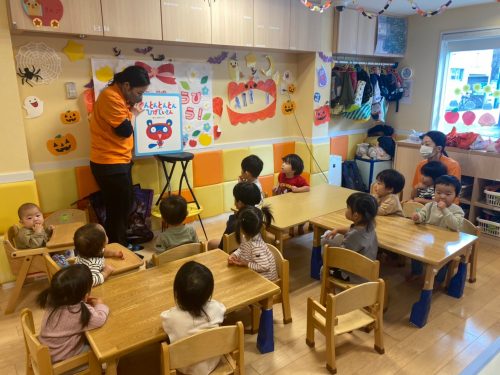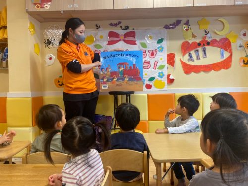 保育士からはみんなが大好きな電車の大型絵本の読み聞かせのプレゼント?