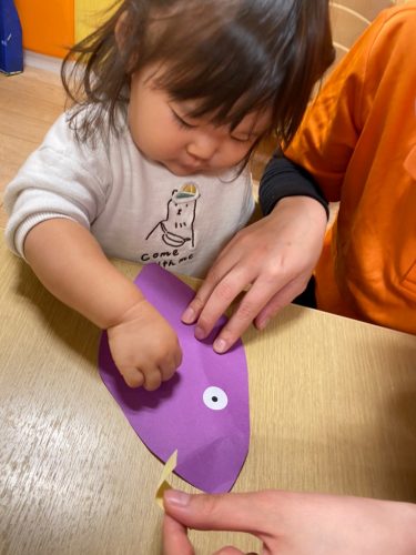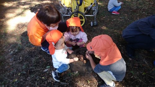 お散歩の準備では、靴下が履けるようになったり、自分でやろうとしたり。。。成長を見せてくれる子どもたちです