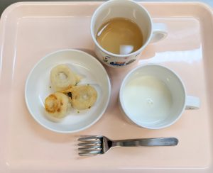 ※おやつのバナナフリッターは、小さく切ったバナナに天ぷらの衣をつけて揚げます。ご家庭でも簡単にできますのでおすすめです。