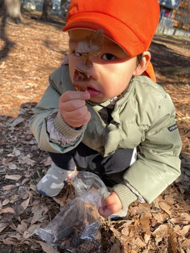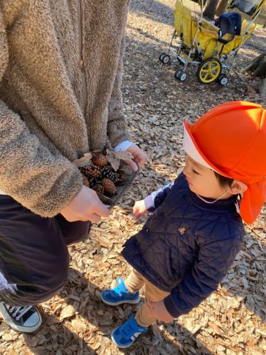 他にも、どんぐりやまつぼっくりなど、木の実や枯れ葉など、自然と触れ合いながら遊ぶことができました?