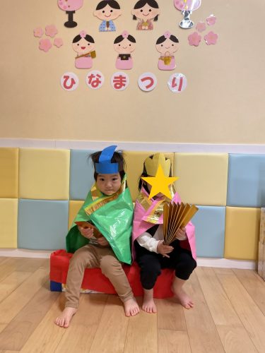 子どもたちは、お内裏様とお雛様に変身してお写真を撮りました?