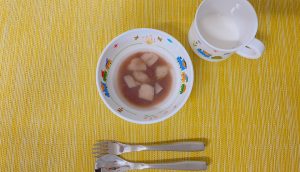 おやつの時間に友だちと元気良くお話しする声が聞こえてきました。給食を通してコミュニケーションをとれると食べるのが楽しくなりますね!!