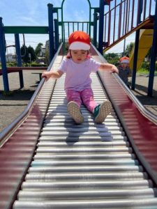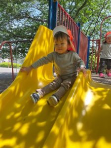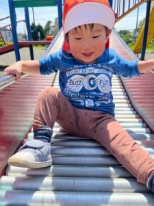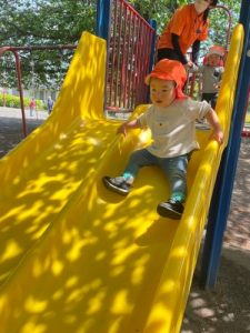 公園では、遊具のローラー滑り台やアスレチックが人気✨?上手に登って、滑り方もすっかり覚えています?