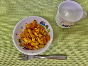 かぼちゃマッシュは甘くて柔らかく、食べやすいのか、スプーンやフォークを使い上手に食べていました。