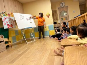 出し物では『パン パン パンサンド』のペープサートで、みんなでいろんな具材を使ってたくさんサンドイッチを作って楽しみました⭐️