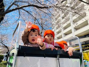 桜の花のキレイさがわかるようで、もも組さんいちご組さんもご機嫌で遊んでいました♫