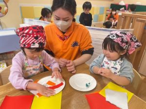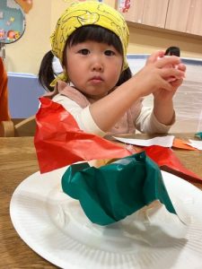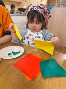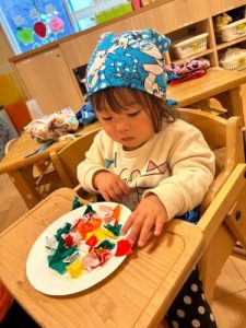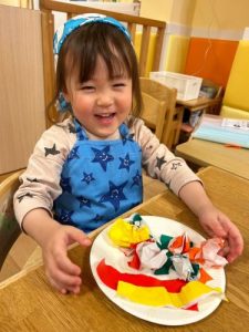 それぞれ自分の思い浮かべる具材を、丸めたり折り紙でちぎって貼り付けました✨😊