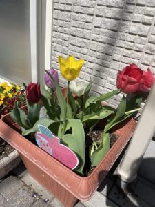 りんご組さんが植えてくれたチューリップも、桜に合わせて春満開です✨😊