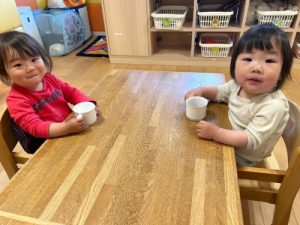 進級児のいちご組さんはおやつの牛乳もおいしく完食!🥛