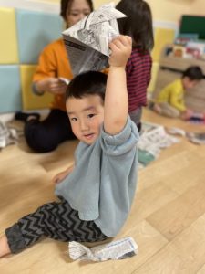 新聞紙遊びも楽しみましたよ✨