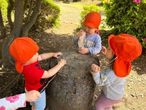 白笹公園では、切り株を使ってバーベキューごっこがブームで大盛り上がりです😊