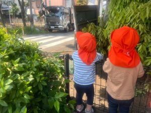第四公園では、近くの建設現場会社さんが見えるので働くくるま🚘を観察しています。
