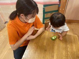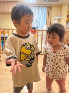 いちご組さんは保育士と一緒に研究…👀