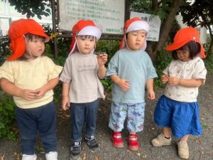 涼しい日に少しだけ公園に遊びに行く時には駅前公園に行くことが多いので、みんなでセミの抜け殻拾いがブームになっているりんご組さんです😊🍎