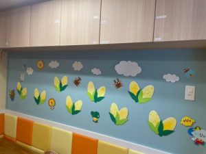 子どもたちの製作が変身して、夏野菜のとうもろこし、ばけばけばけばけばけたくんに可愛く変身して、お部屋を彩ってくれています💖