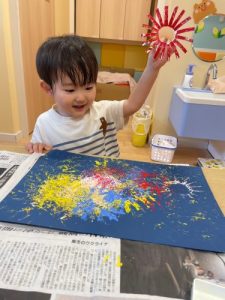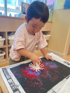他にも、トイレットペーパーの芯を使って【花火🎆】を作りました😊