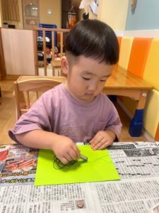夏らしい遊びとして水遊びも楽しいですが、製作や体操などの室内遊びも取り入れながら過ごしています😊