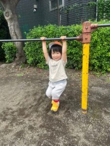 りんご組さんを中心に、鉄棒のぶら下がりも人気です😊