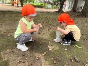 【松蔭公園ではどんぐり拾い】