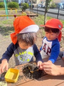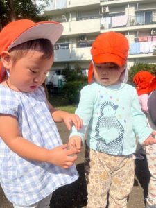 りんご組さんはすっかり虫と仲良しになっています✨🦗