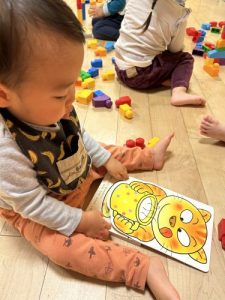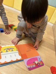 本棚から好きな絵本を選んで、保育士に「よんで〜!」ともってきてくれます☺️❣️