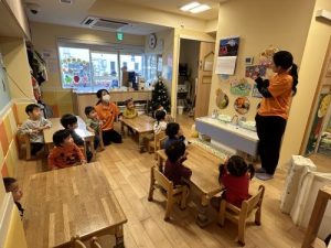「クリスマスえほん」という仕掛け絵本を通して、サンタさんの紹介をしました🎅