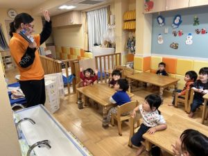 保育室内にある壁面のサンタさんや、お散歩の時にサンタさんの飾りを見つけると、「あ!サンタさんだ!!」と大発見な子どもたちです😍
