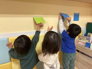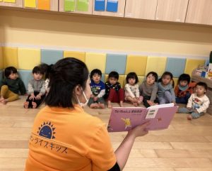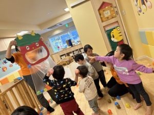 保育園では絵本以外にも、豆に見た立てたボール投げゲームや、隠れている鬼を探し出す鬼探しなども楽しんでいた子どもたち😆