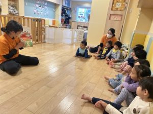 この絵本は仕掛け絵本になっているため、ページをめくるたびにワクワクした表情で絵本を見てくれている子どもたち😆💓