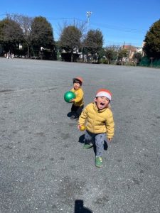ふれあい広場では、青空の下でボール⚽️が大人気💖
