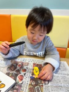いちご組さんも、保育士と一緒に自分なりにお顔を描いてみました!