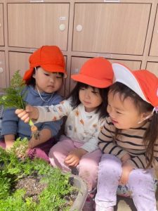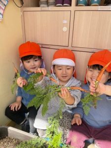 『いろんな形をしているね〜👀』と収穫したにんじんを観察していました🎵