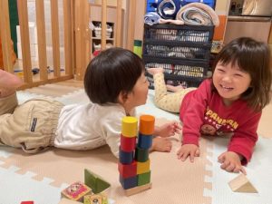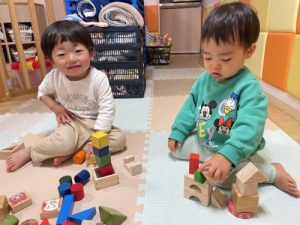 お部屋では、積み木やプラレールで遊びました🎵😊