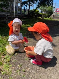 今週も気温が高くて暑かったですね💦子ども達も汗をかいて遊んでいました💦