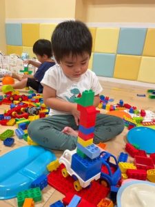ブロック遊びではとっても真剣👀
