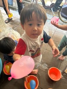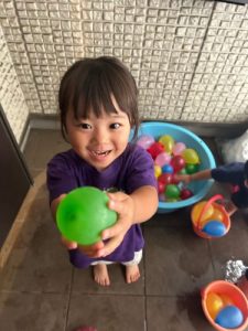 大人気の水風船🩵感触や色づかいを楽しんで遊んでいます🎶