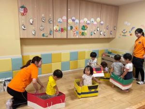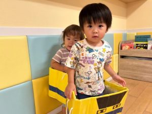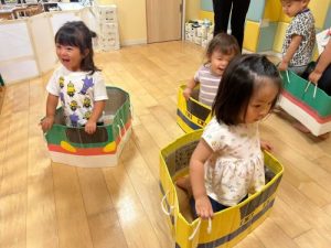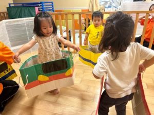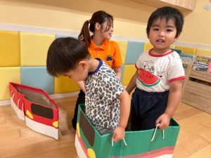 ダンボールで作ってある箱電車も楽しみました🎶🚃