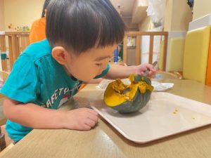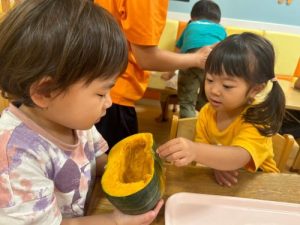 保育士がカットしたかぼちゃも観察!!