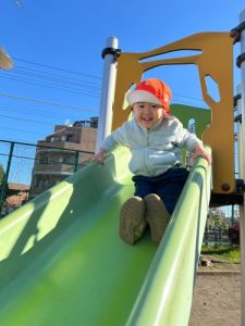公園の大きい滑り台にもたくさん挑戦しています🛝✨