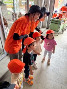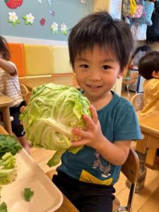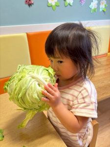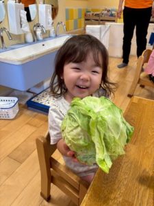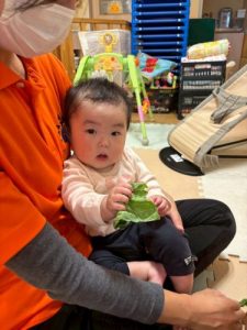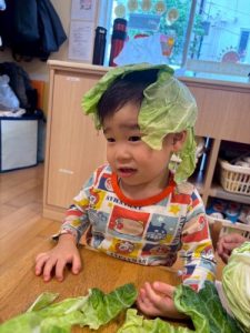 頭に乗せて「みて~!ぼうしだよ!」と楽しんでいるお友だちもいました👒