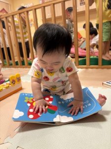 最近絵本にとても興味津々なももぐみ(0歳児クラス)さん🍑💗