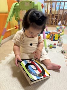 月齢が高くなってくると、絵本の中の絵を指さして内容を楽しむ姿も見られ始めてきました👀💓