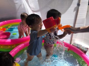 サンライズキッズ保育園です。 秋になりましたが、まだまだ暑さは続いていますね 気候を考慮しながら、水...