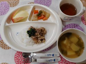 ☆11月11日(土)☆ ・豚丼 ・みそ汁 ・大根の煮物 ・りんご