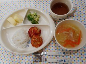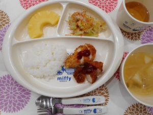 ☆3月14日(水)☆ ・ご飯 ・チキンカツ ・じゃがいもみそ汁 ・ゆかりあえ ・パイン缶