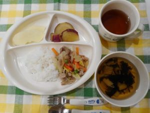☆3月12日(月)☆ ・中華飯 ・すまし汁 ・さつま芋の煮物 ・りんご