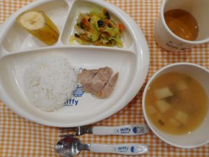 ☆3月16日(金)☆ ・ご飯 ・みそ汁 ・鶏のしょうが焼き ・野菜ソテー ・バナナ