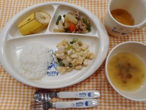 ☆1月17日(水)☆ ・ご飯 ・なめこの味噌汁 ・豆腐の卵煮 ・大根の炒め煮 ・バナナ